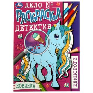 Раскраска с заданиями и ребусами А4 Умка Детектив. Единороги 081906 16стр.