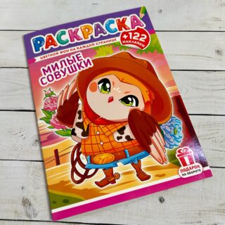 Раскраска с наклейками А4 Аниме. Совушки милые (122 наклейки) РН-12351.1235 16стр.