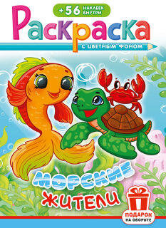 Раскраска с наклейками А5 Морские жители (56 наклеек) РНМ-727 16стр.
