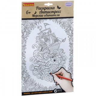 Раскраска- антистресс А4 БВ Морские обитатели РКСА-003 16стр.