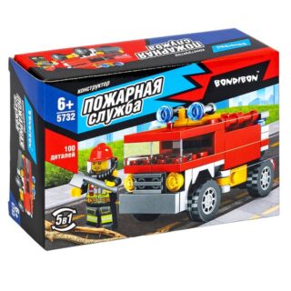 Конструктор пластик 100 деталей Пожарная Служба/Пожарная машина Bondibon ВВ5732