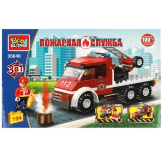 Конструктор пластик 104 детали Пожарная машина с лестницей 3в1 35040-CG Город мастеров