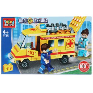 Конструктор пластик 119 деталей Реанимационный автомобиль 5119-UU Город мастеров