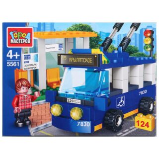 Конструктор пластик 124 детали Троллейбус с остановкой и фигуркой Город мастеров 5561-KK