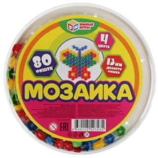 Мозаика пластик 80 фишек (18,5мм) круглые фишки 13мм, в коробке Умные игры 527435