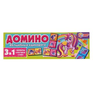 Игра настольная Домино пластик Волшебные единороги 3в1 в коробке 3+ Умные игры 520245