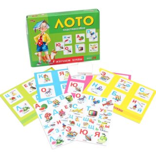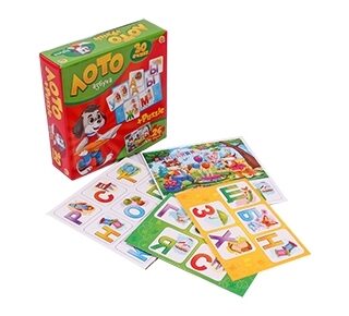 Игра настольная Лото детское пластик 24фишки Азбука в картинках, в коробке РК ИН-6006