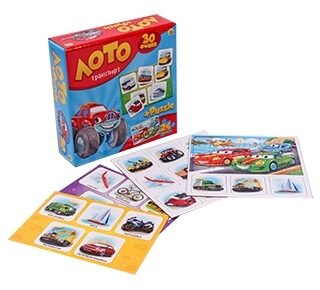 Игра настольная Лото детское пластик 24фишки Транспорт, в коробке РК ИН-6010