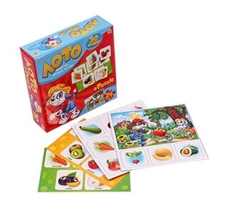 Игра настольная Лото детское РК пластик 30фишек +пазлы 24эл Фрукты, овощи, ягоды ИН-6066