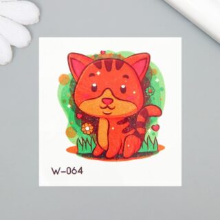 Наклейка тату для тела 6*6см Рыжий полосатый котенок цветная 9690985