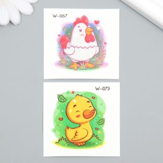 Наклейка тату для тела 6*6см Петушок/Утенок цветная 9690980