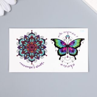 Наклейка тату для тела 10,5*6см Бабочка и цветок мехенди цветная 9317568