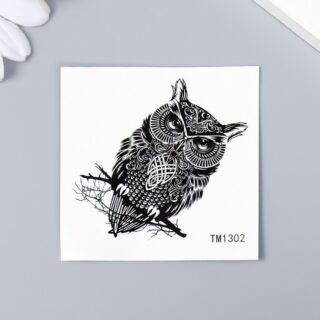 Наклейка тату для тела 6*6см Темный филин черная 9323526