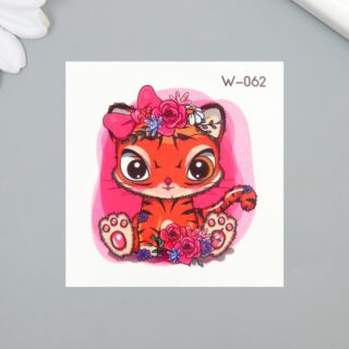 Наклейка тату для тела 6*6см Тигренок с цветами и бантиком цветная 9690982