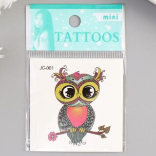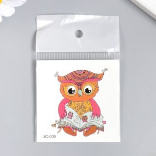 Наклейка тату для тела 6*6см Совенок с книгой цветная 5074826