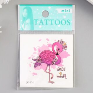 Наклейка тату для тела 6*6см Фламинго с цветами цветная 5074838