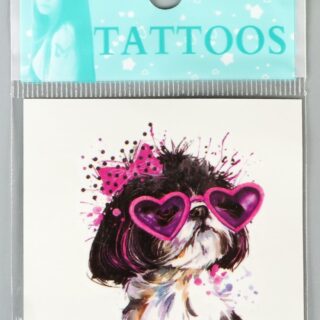 Наклейка тату для тела 6*6см Песик в очках сердечком цветная 4753372