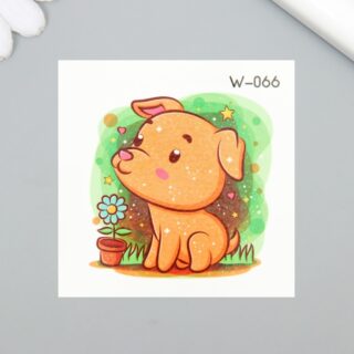 Наклейка тату для тела 6*6см Щеночек с цветочком в горшке цветная 9690984