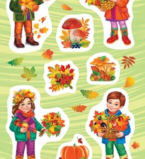 Наклейки 16*10см Девушка осень и животные 0-11-759