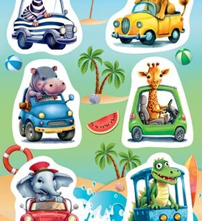 Наклейки 16*10см Животные африки на машинах 0-11-651