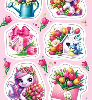 Наклейки 16*10см Единорожка с тюльпанами 0-11-771