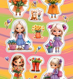 Наклейки 16*10см Девочки с цветами 0-11-772