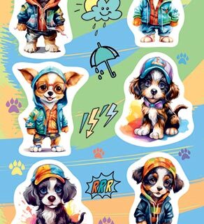 Наклейки 16*10см Собачки в кепках 0-11-744