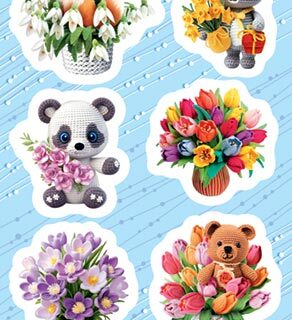 Наклейки 16*10см Мягкие игрушки с цветами 0-11-714
