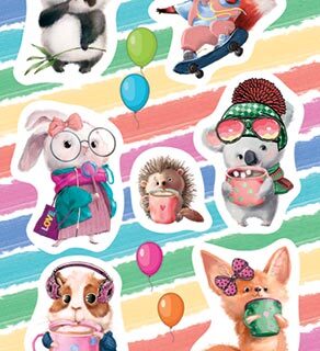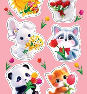 Наклейки 16*10см Милые животные и солнышко с тюльпанами 0-11-777