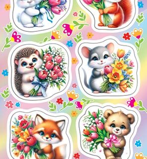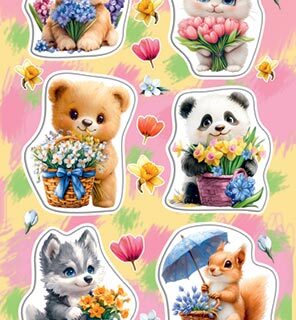 Наклейки 16*10см Милые животные с весенним букетом 0-11-774