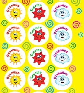 Наклейки для оценок 16*10см Солнышко/Звездочка/Облачко 0-11-127