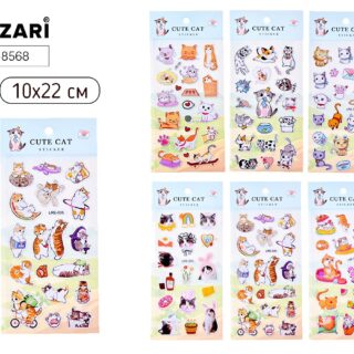 Наклейки объемные 18*9,5см Котики (6 видов) M-8568