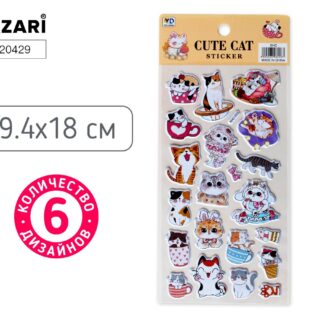Наклейки объемные 18*9,4см Котики (6 видов) M-20429