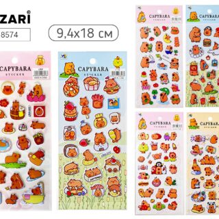 Наклейки объемные 18*9,4см Капибара (6 видов) M-8574