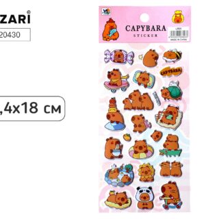 Наклейки объемные 18*9,4см Капибара (6 видов) M-20430