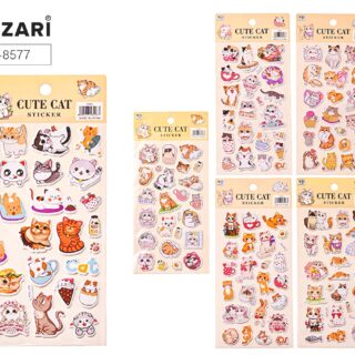 Наклейки объемные 18*9,5см Котики (6 видов) M-8577
