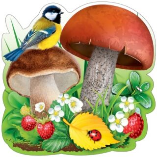 Наклейка декоративная на скотче 19*19см Грибы и синица 3001253