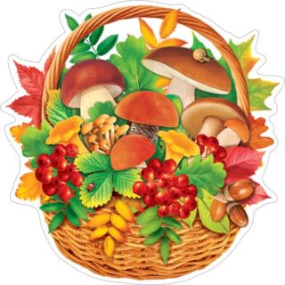 Наклейка декоративная на скотче 26*26см Осенние листья, рябина и грибы в корзинке 7-64-077А