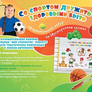 Наклейка декоративная на скотче Со спортом дружить – здоровыми быть (набор 14 наклеек) 9-65-010