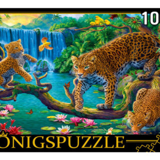 Пазлы 1000эл Konigspuzzle Леопарды у водопада ФK1000-6634