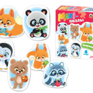 Пазлы фигурные картон макси 2-4эл Зверята (6 картинок) Русский стиль 02559