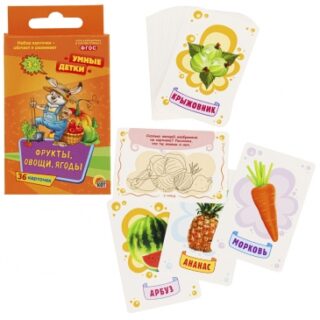 Обучающие карточки 36шт Умные детки. Фрукты овощи и ягоды, в коробке РК ИН-3031