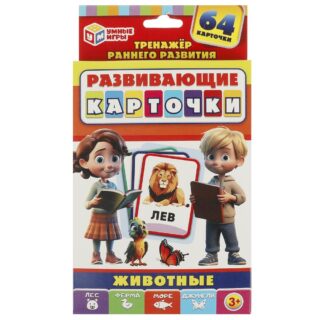 Обучающие карточки 64шт Животные, в коробке 3+ Умные игры 429673