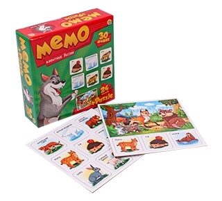 Игра настольная Мемо 30фишек +пазл 24эл Животные России, в коробке РК МП-0368