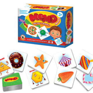 Игра настольная Мемо Фигуры и формы. Парочки (32 карточки) в коробке 3+ Русский стиль 03464