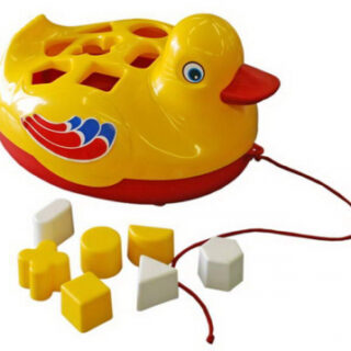 Логическая игрушка Утенок с веревочкой пластик + сортер с 7 фигурками, в сетке 65620