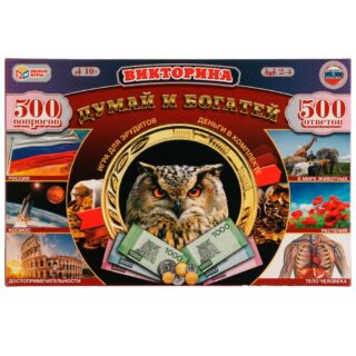 Игра настольная викторина 500вопросов Думай и богатей с деньгами, в коробке 6+ Умные игры 111840