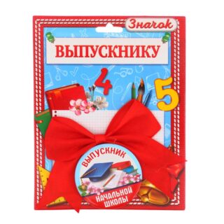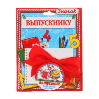 Значок с бантом Выпускник начальной школы (книги и карандаш) 45мм пластик 2750829