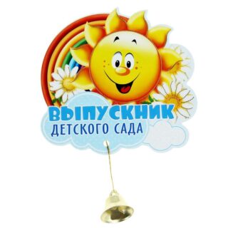 Значок с колокольчиком Выпускник детского сада (солнышко) картон 99мм 972596