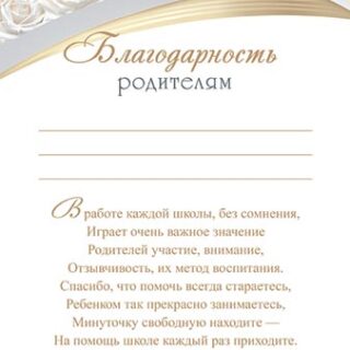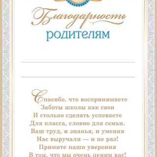 Благодарность родителям А5 За хорошее воспитание 01,707,00